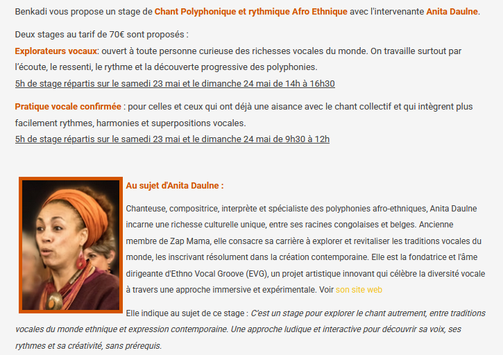 Stage de Chant Polyphonique et rythmique Afro Ethnique les 23 et 24 mai 2026